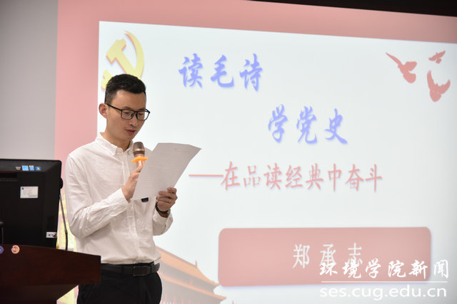045181班贺沁文说,郑老师富有独创性地将毛泽东诗词和中共党史结合起来进行剖析,这使得具有客观、冷静性格的历史与具有热烈、感性性格的诗词产生了有力的碰撞、完美的融合,自己对毛主席的生平、党的历史都有了更立体的认知。