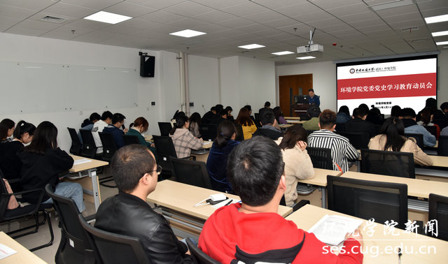 李素矿作党史学习教育动员讲话。他首先带领大家一起学习习近平总书记在党史学习教育动员大会上的重要讲话精神;传达了党中央、教育部党组、湖北省委、学校党委关于党史学习教育动员大会主要精神和部署要求。