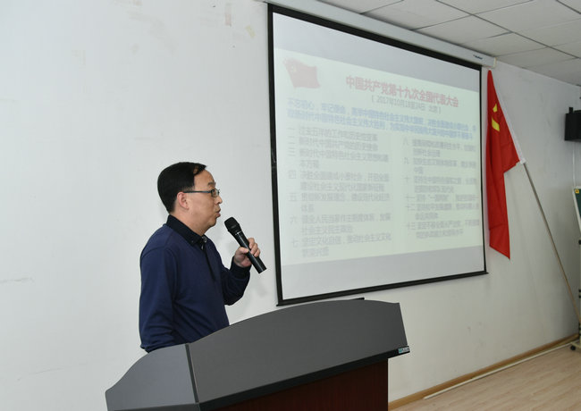 党课上,马腾院长向大家讲解了十九大的一个鲜明主题和报告的十三部分、习近平新时代中国特色社会主义思想、中国特色社会主义进入新时代的“四个伟大”、社会主义生态文明观、社会主义生态文明体制改革、推动人与自然和谐发展现代化建设。结合肉视频