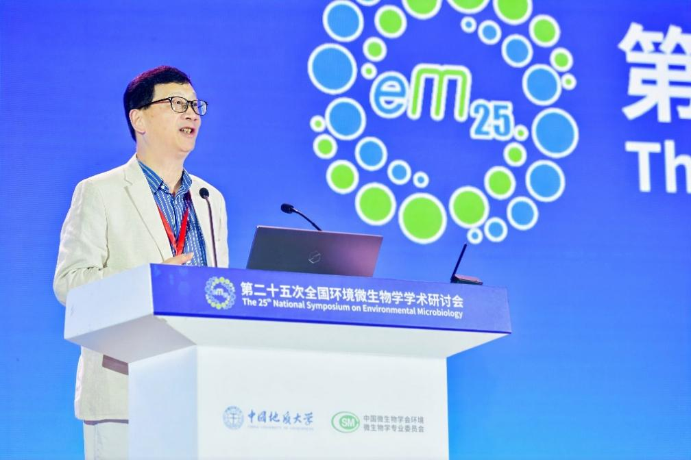 谢树成院士作题为《微生物与环境的协同演化》的大会特邀报告。他强调了在地质历史背景下研究微生物的重要性,总结了地质环境和微生物协同演化的最新进展,展望了未来发展的新方向,并希望加强和推动地质病毒学这一新领域的发展。