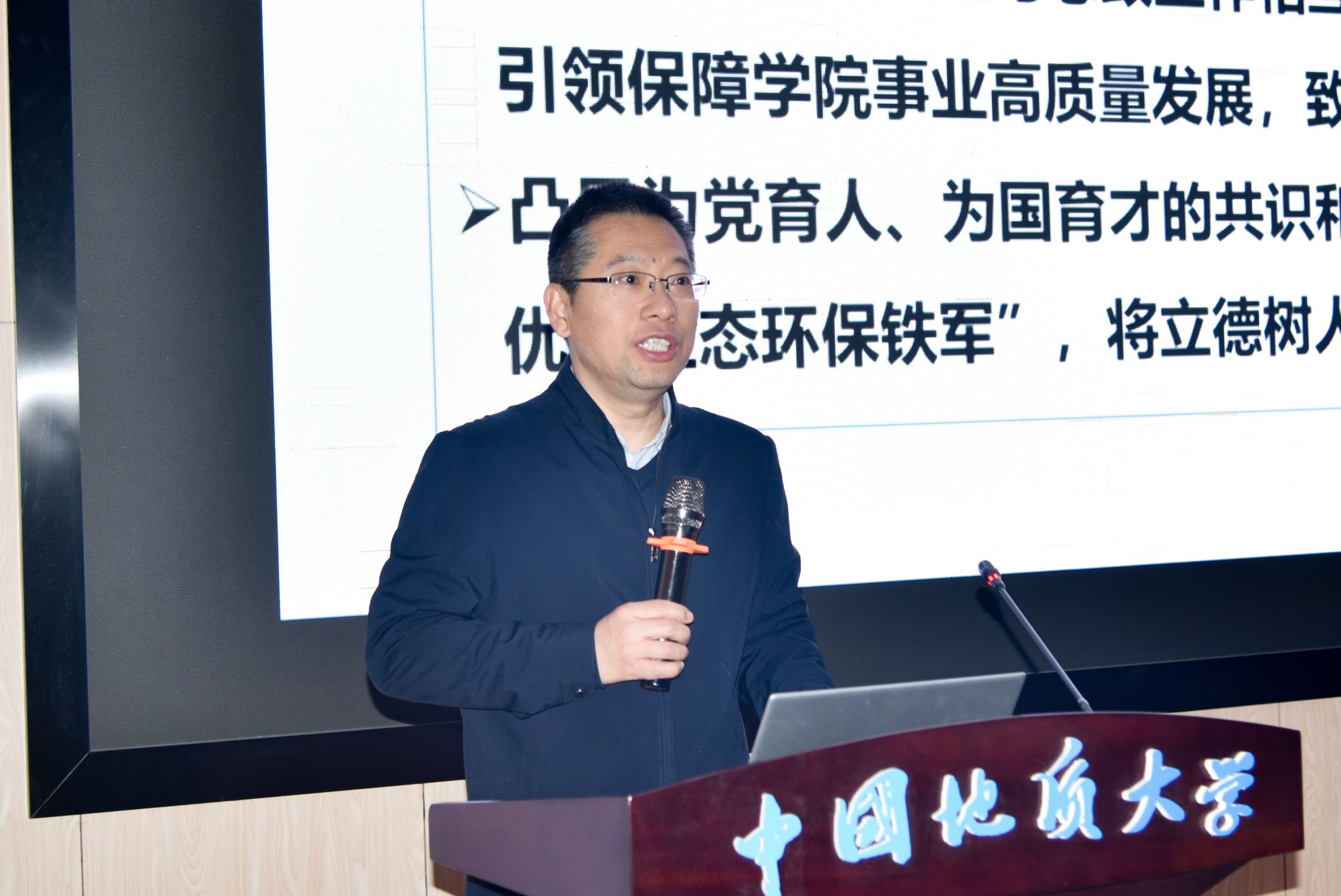 院党委书记姜明敏从筑牢工作基础、落实立德树人、打造核心优势、增强战略主动等方面,围绕高质量党建体系、高标准教育教学、高层次人才科研、高水平对外合作等内容作学院2024年度党建工作报告,进行个人述职述廉。