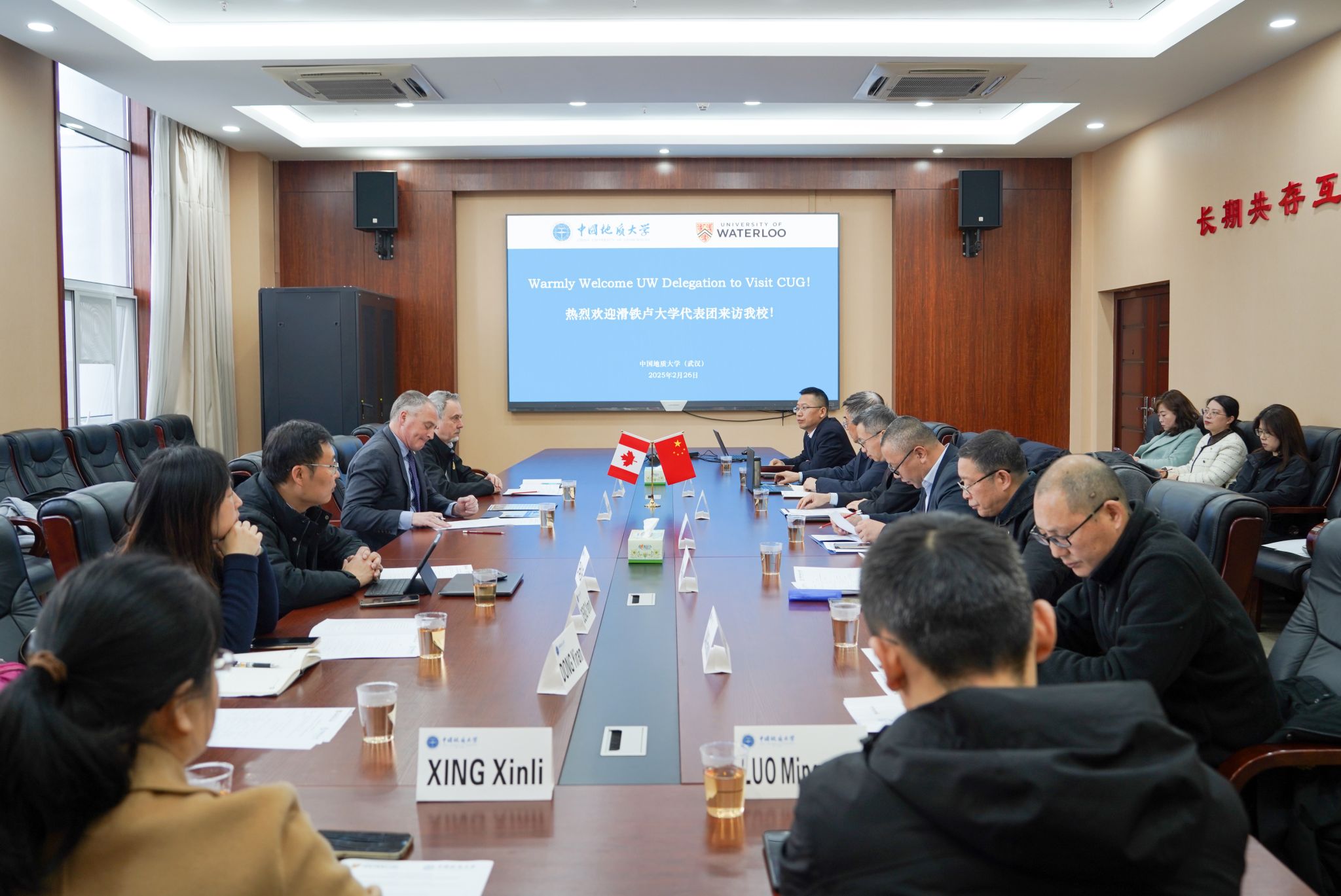 (通讯员刘凤莲、付苑婷 摄影孔凡非 编辑王孟雪)2025年2月25日至26日,滑铁卢大学理学院院长Chris Houser教授及Philippe Van Cappellen院士一行莅临中国地质大学(武汉),就中外合作办学相关事宜开展深入协商与交流。此次访问旨在进一步推动两校在学术、教育领域的合作,为双方师生搭建更广阔的交流平台。