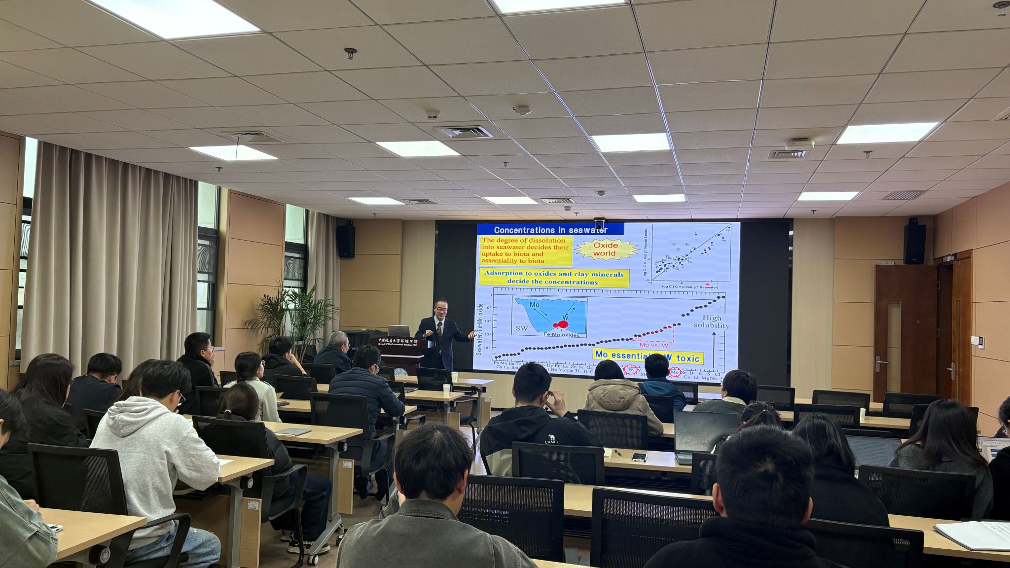 高桥教授积极倡导和重视分子地球化学的基础研究和应用实践,他在报告中强调,任何元素基本行为的深刻理解都很重要,包括对环境和生命的影响、各种自然资源的形成及其探寻与开发利用等,迅速发展的同步辐射技术可以为在分子尺度上探究各种元素的赋存状态和化学行为提供强有力的支撑,尤其是软X射线区的XANES对于有机-无机相互作用的精细研究具有明显优势,并在环境地球化学研究和各种矿产资源评价与开发中发挥重要作用。