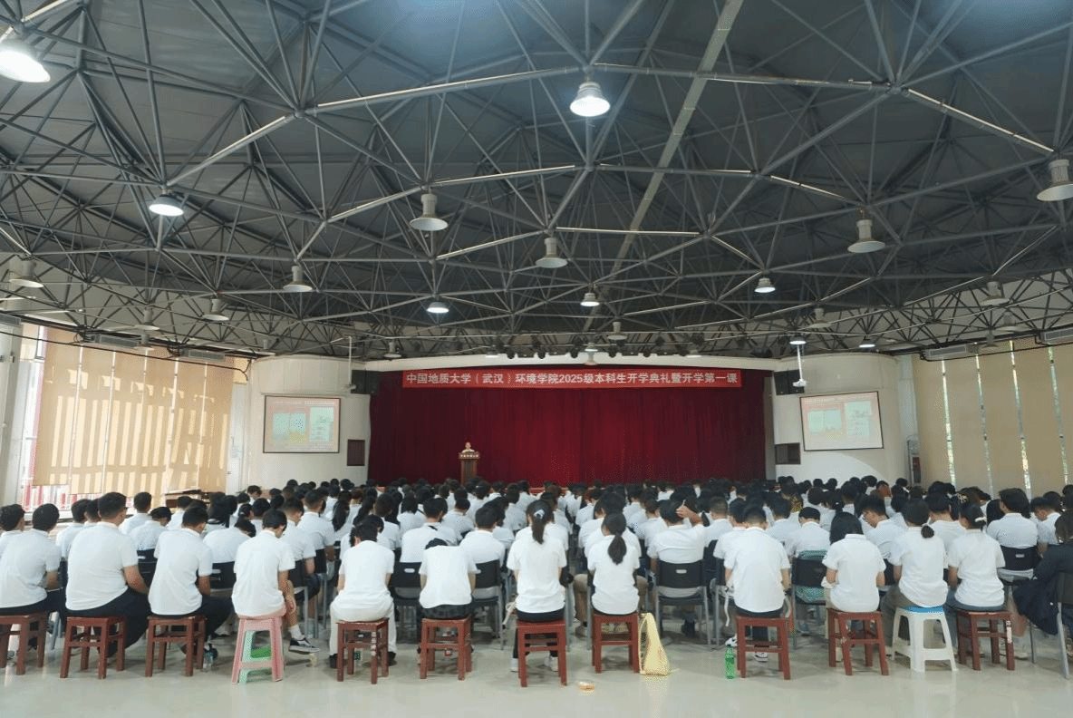 2025级本科新生开学典礼暨开学第一课在南望山校区西区大学生活动中心二楼演播厅举行。学院党委书记姜明敏、院长史建波,副院长柴波、孔少飞、学术副院长杜尧,水资源与水文地质系党支部副书记、045252班主任李仲夏,环境科学与工程系副主任、04H254班主任崔艳萍,生物科学与技术系主任、04H253班主任董依然,大气科学系老师、046252班主任谢风华,实验教学中心主任潘欢迎、学院办公室主任刘凤莲、学工组辅导员及2025级全体本科新生参会。辅导员陈俊男主持会议。