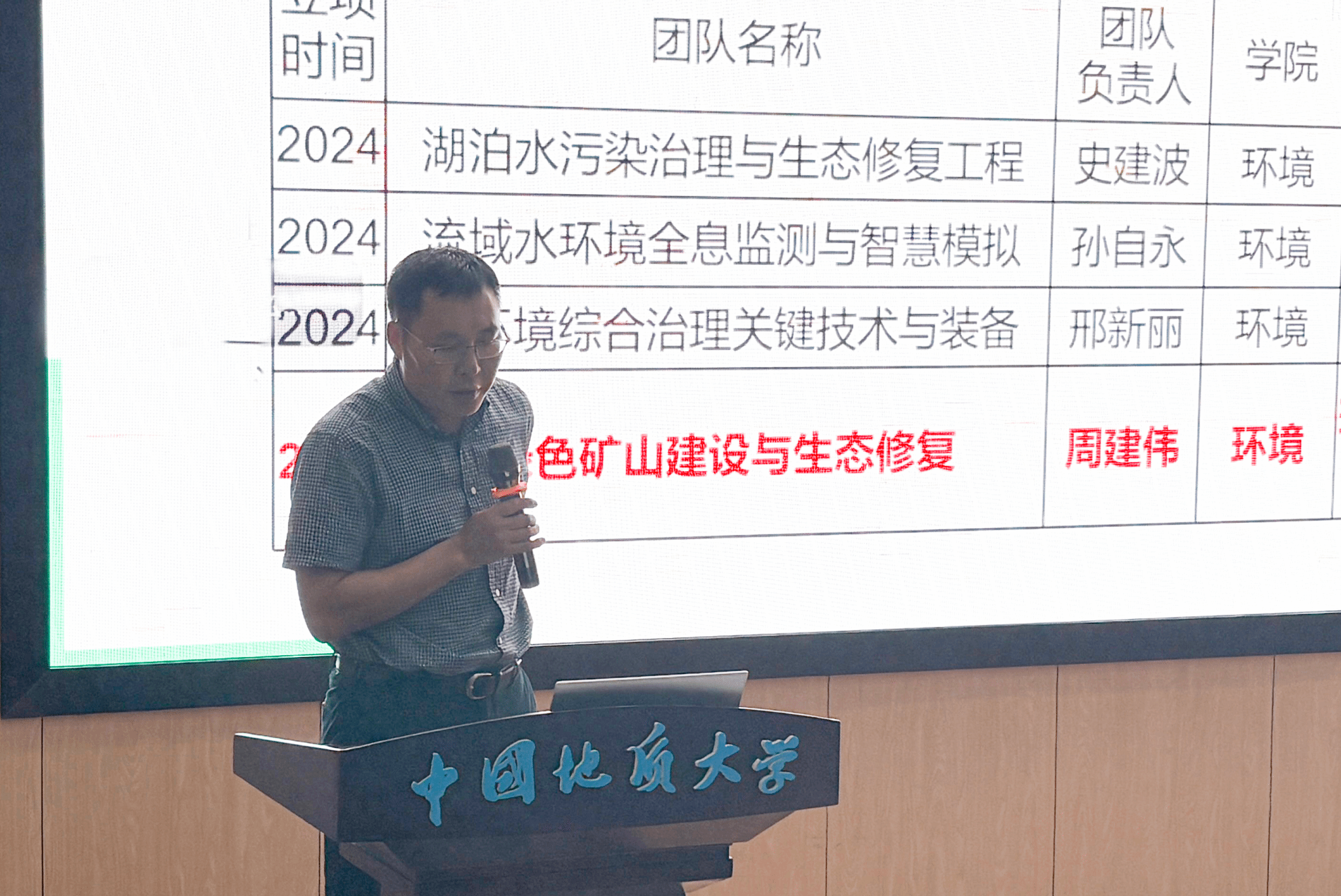 谢先军副院长从科研经费、发展目标与平台建设三方面汇报工作。截至2025年9月,学院新增科研项目136项,实到经费近八千万元。他提出,学院将以“构建地学特色鲜明的一流环境地学学科群”为目标,重点推进地下水质与健康教育部重点实验室等三大国家级平台建设,强化“流域水生态环境保护”“土壤-地下水污染修复”等交叉领域技术研发,推动“水质成因与健康饮水”“地热资源勘探”等方向产学研一体化发展。