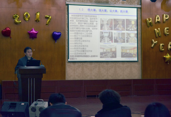院长马腾代表学院领导班子述职述廉。他向全院教职工报告了一年来“两学一做”学习教育、党的建设、培养人才、研究科学、服务社会、平台建设、环境文化、党风廉政建设和工作作风建设等工作完成进展情况,总结了成绩,查找了不足,提出了今后努力方向。