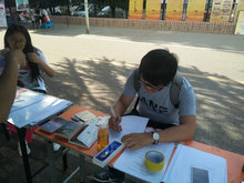 (左图为苏峻同学为前来的参观者讲解,右图为25日志愿者的合照)