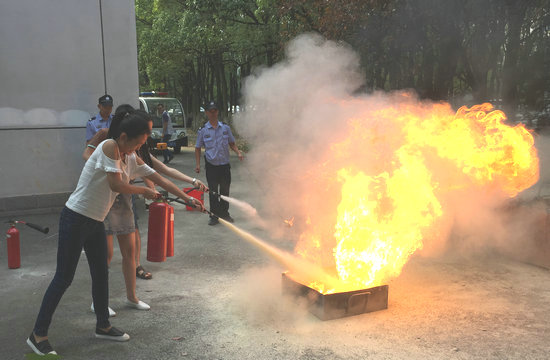 师生进行消防安全技术培训。
