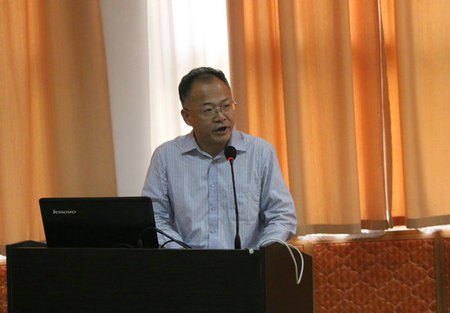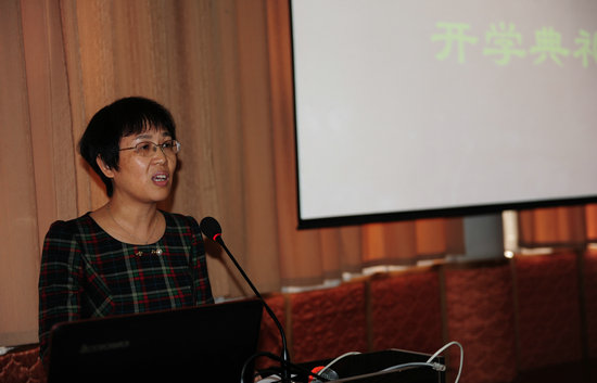 中国气象科学研究院研究生部主任王欣讲话。他介绍了中国气象科学研究院的基本情况。他说,中国气象人,职责重大,使命崇高,同学们不会后悔选择这一崇高事业。希望同学们打好基础,将来有机会加入到中国气象局和中国气象科学研究院工作。