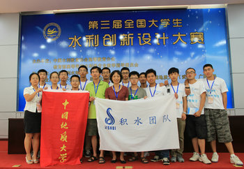 大学生课外科研团队——积水团队选送的4支 参赛队伍表现突出:张亚男、刘越、夏新星、李琦完成的作品《基于地质材料的自来水处理系统》(指导教师:马腾、马传明),和泽康、范奇、王斌、李秀文完成 的作品《基于雨污二次分流的小区式雨水利用系统设计》(指导教师:马传明、潘欢迎)获特等奖;王宗星、闫海虎、冯丹、张长城完成的作品《降雨及入渗自动化 监测仪》(指导教师:潘欢迎、马腾)获一等奖;李仲夏、高延康、金子祺、袁超完成的作品《地下水库回灌方法设计》(指导教师:万军伟、李春雨)获二等奖; 另一支参赛队伍:贾梦琦、韩兆丰、谢如意、边潇完成的作品《基于ORC-GAC-Fe(O)装置在地下水Cr污染修复技术中的应用》(指导教师:成建梅、谢先军)获二等奖。