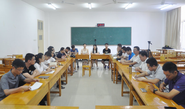 在中国地质大学(武汉)秭归实习基地综合楼举行师生座谈会。学院党委书记李素矿,副院长甘义群、副书记朱继,带队老师曾斌、高旭波、邓斌、钱坤以及20余名学生代表参与活动。朱继主持座谈会。