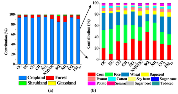 本研究基于多卫星数据(MCD14ML和MCD64 AL)、更新的生物量数据、本地化的植被数据、本地化的排放因子及部分实地调查数据,准确估算了中国中东部2003-2015年露天生物质燃烧的多种污染物排放(空间分辨率为1*1 km,时间分辨率到月)。同时,本研究充分考虑了历年来的国家和区域生物质露天焚烧防控和管理政策及影响排放的社会经济和气象因子等多重因素,将为控制政策的制定和完善,以及后续空气质量、气候和人类健康效应的评估提供科学依据。