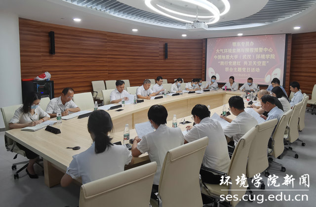 联合开展“践行党建红、共卫天空蓝”的主题党日活动。主题围绕深入学习习近平生态文明思想和习近平总书记考察湖北重要讲话精神,促进美丽湖北建设和全省生态环境保护质量提升。鄂东专员办涂超副主任和党员干部,省监测站党委书记许克学站长、刘少辉副站长和大气环境监测与预报预警中心党员同志,学院党委书记李素矿,党委委员、大气系党支部书记孔少飞和教师代表参加。