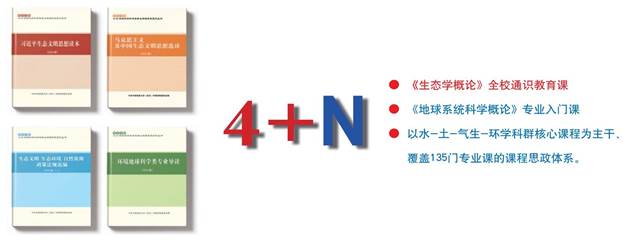 结合学科特点、专业特色和教育教学规律、人才成长成才规律,组织师生编写四本课程思政教材。编印《习近平生态文明思想读本》,内容涵盖习近平生态文明思想的生态兴则文明兴、生态衰则文明衰的深邃历史观、人与自然和谐共生的科学自然观、绿水青山就是金山银山的绿色发展观、良好生态环境是最普惠的民生福祉的基本民生观、山水林田湖草沙是生命共同体的整体系统观、用最严格制度保护生态环境的严密法治观、全社会共同建设美丽中国的全民行动观、共谋全球生态文明建设的全球共赢观八个部分。同时编印了《马克思主义及中国生态文明思想选读》《生态文明 生态环境 自然资源 政策法规选编》和《环境地球科学类专业导读》。校党委书记黄晓玫为本丛书作序。该系列教材先后修编2次(2020年、2022年),在全校大学生和留学生中使用。
