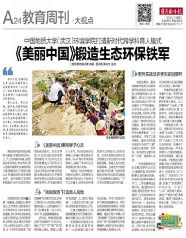 不断完善“美丽中国”课程思政体系,打造习近平生态文明思想教育实践高地,把习近平生态文明思想深度融入人才培养全过程和各个环节,教育引导大学生争做红专能优的新时代生态环保“铁军”,把论文写在祖国大地上,做习近平生态文明思想的坚定信仰者、忠实践行者、不懈奋斗者。