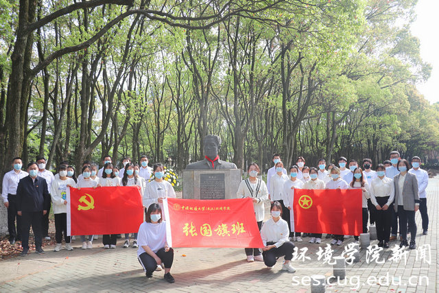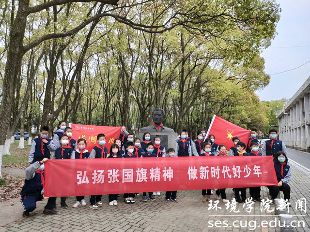 天地英雄气,千古尚凛然。每逢清明节,伫立在水工楼后的张国旗雕像前总会被摆上一篮鲜花,这是环境学子对英雄学长的敬意,这一传统已经持续了五年。今年,地大附校的学生为雕像系上鲜艳的红领巾。以祭扫的形式致敬英雄,是学生们学习生活中的重要内容,也是向革命、建设、开放各个时期的英雄先烈致敬的重要方式。广大学子通过缅怀英雄事迹和精神,学习英雄好榜样,强化不忘初心、牢记使命的意志,激励自己不懈奋斗,用所学知识回报、建设家乡。