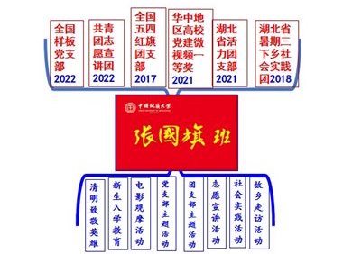 “张国旗班”团支部充分发挥功能型团支部的战斗堡垒作用和优秀团员的先锋模范作用,构建了以合唱团、实践团、宣讲团、志愿团为主的建设模式,通过开展联合主题团日、举行学生干部思政大会、创作舞台剧艺术作品、走进社区敬老爱老等活动,传承弘扬“红专能优”的张国旗精神,打造功能型团支部育人高地。团支部前身040131班团支部荣获“全国五四红旗团支部”,“张国旗班”团支部在湖北省2021年“百生讲坛”活力团支部大赛中荣获“银牌团支部”称号,并连续4年获评学校“五四红旗团支部标兵”、2次获校级“团会设计大赛一等奖”,团支部的引领力、组织力、服务力和贡献度不断提升。