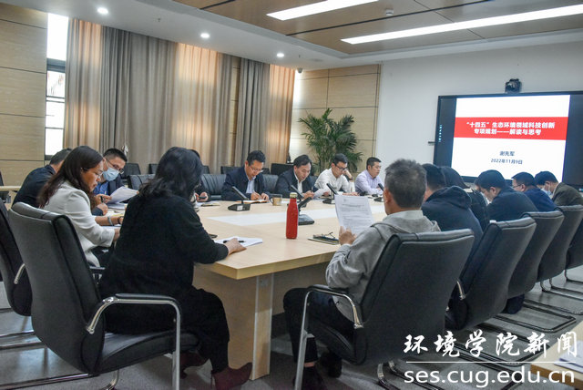 在科教楼四308会议室召开党委理论学习中心组学习(扩大)会议,学习贯彻党的二十大精神,学习落实《“十四五”生态环境领域科技创新专项规划》。学院党委理论学习中心组成员、各学科负责人和专业负责人参加。