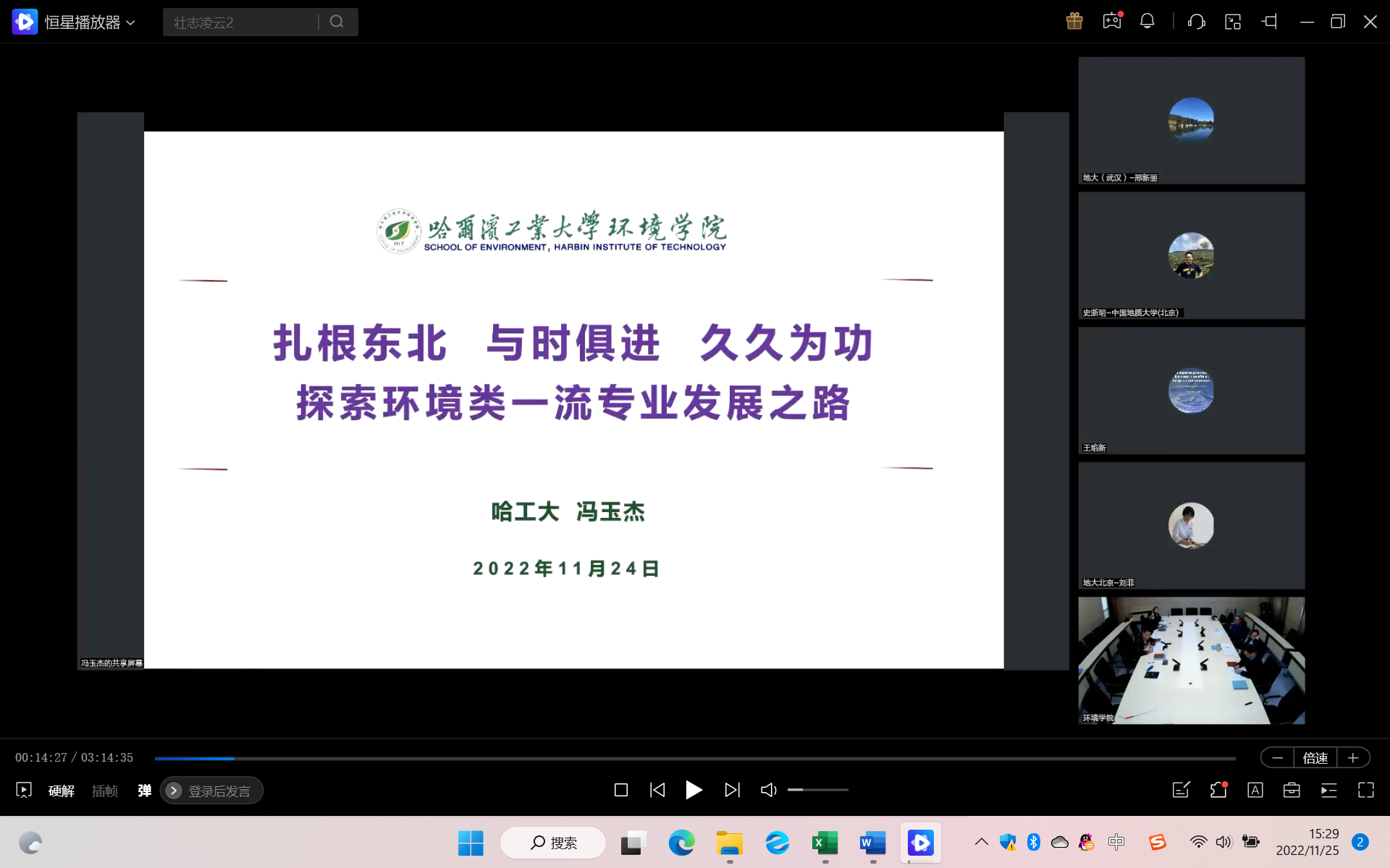 院长史建波教授邀请,11月24日,哈尔滨工业大学冯玉杰教授以《扎根东北与时俱进久久为功探索环境类一流专业发展之路》为题线上作学术报告。该报告是我校校庆七十周年系列学术报告活动之一,柴波教授主持报告会。