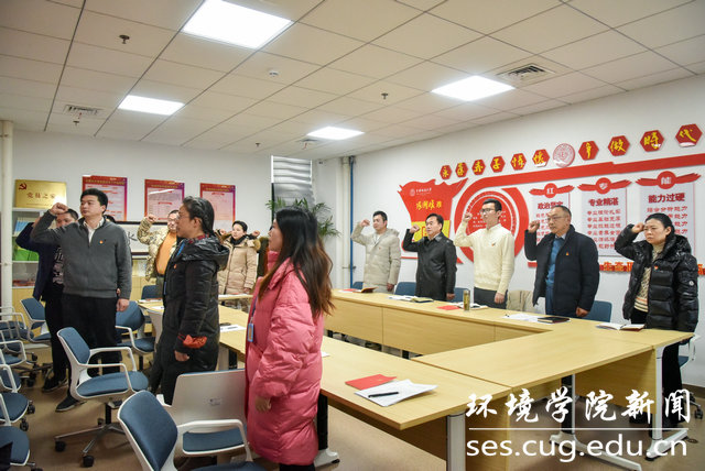 支部党员唱国歌、温誓词。