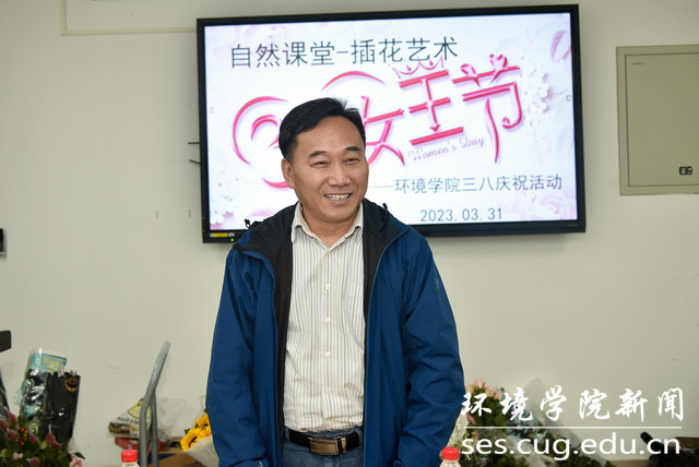 党委书记李素矿,学院女性教工参加。学院工会女工委员邢新丽主持插花活动。