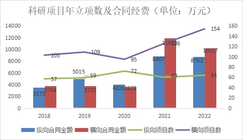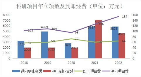 科学研究聚焦“四个面向”,水平不断攀升。学院坚持国际前沿与国家需求目标相结合,基础研究和应用研究并重的原则,积极开展科学研究,努力提高服务国家目标的意识和能力。2022年新增科研项目218项,合同经费1.89亿,到账经费1.05亿元。科技部重大专项项目1项,课题6项。国家自然科学基金立项资助27项,其中优青1项,重点2项。湖北省自然科学基金4项,其中获创新群体项目1项、杰出青年人才项目1项、面上项目1项、青年项目1项。