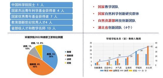 人才引培增效,综合实力增强。经过近年发展,学院现有专任教师129人,其中教授53人,占比36%,副教授69人,占比46%,具有博士学位教师占99.2%,45岁以下教师占比达74%。院士实现零突破,新增中国科学院院士1人,国家杰出青年科学基金获得者4人,万人计划领军人才1人,国家自然科学基金优秀青年基金获得者7人,万人计划青年拔尖1人,教育部新世纪优秀人才4人,省部级人才和教学名师13人。从院士,到国家教学团队和教学名师;从湖北省创新群体,到国家创新群体;从湖北省百名女性科技创新人才,到湖北三八红旗手;从“三个层次”学科平台,向“三类三级三层”跨学科平台网络拓展;从学院年人均科研经费70万,到突破100万元;从湖北省试点学院,到国家“三全育人”“党建标杆院系”“湖北十大党建案例”“全国样板党支部”等;一年一点进步,一年一个台阶,人才引培助力学院发展进入高质量快车道,学院改革发展已呈现从点上出彩、到面上开花,特色亮点纷呈,人才辈出、硕果累累,高原上有高峰的大好局面。