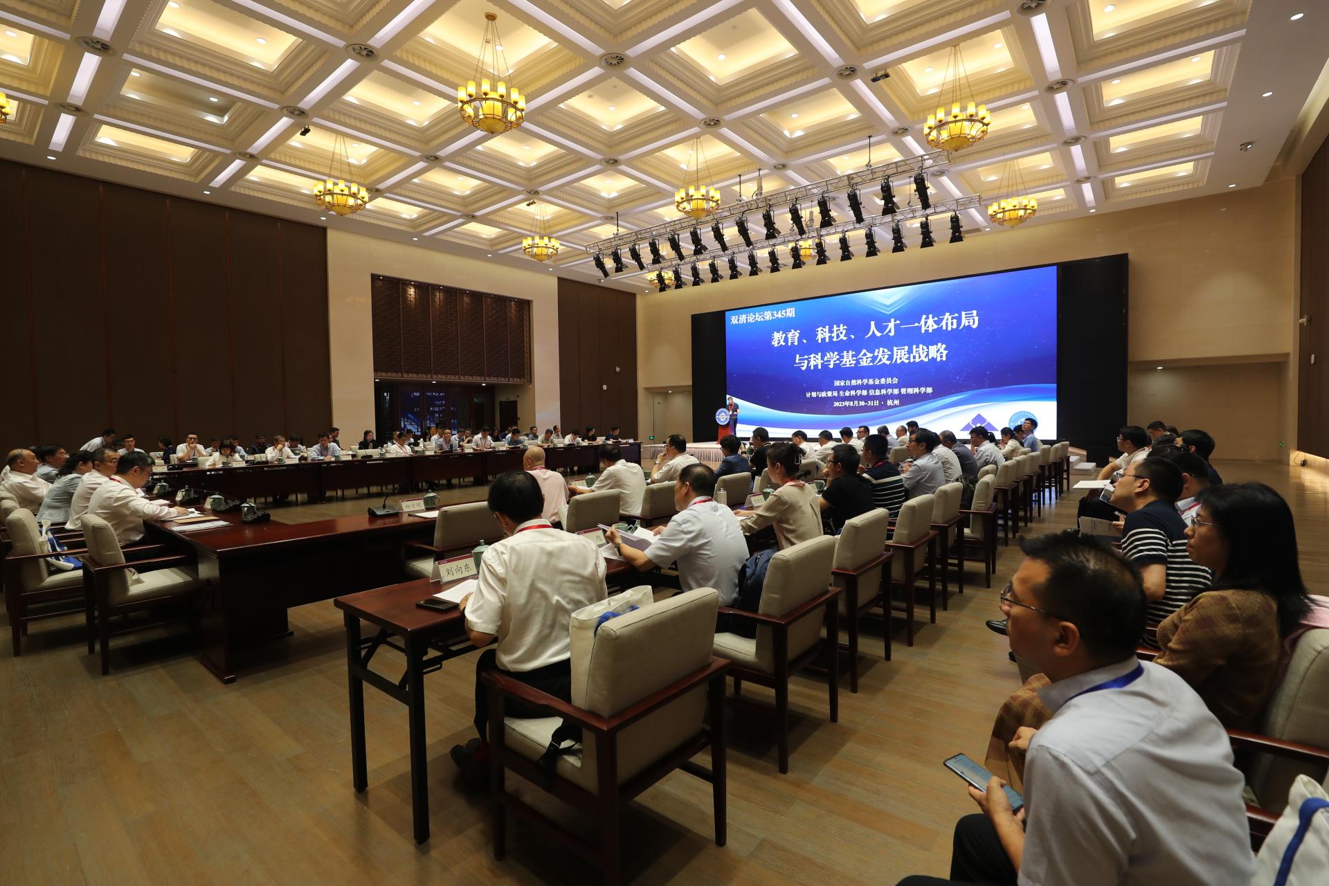 转自地大新闻网 8月30日至31日,自然科学基金委第345期双清论坛“教育、科技、人才一体布局与科学基金发展战略”在杭州召开。本次论坛由自然科学基金委计划与政策局、生命科学部、信息科学部、管理科学部联合主办,论坛执行主席由浙江大学校长杜江峰院士、中国地质大学(武汉)校长王焰新院士、南京大学副校长陆延青教授共同担任。自然科学基金委党组成员高瑞平出席论坛开幕式并致辞。自然科学基金委计划与政策局副局长姚玉鹏主持论坛开幕式。