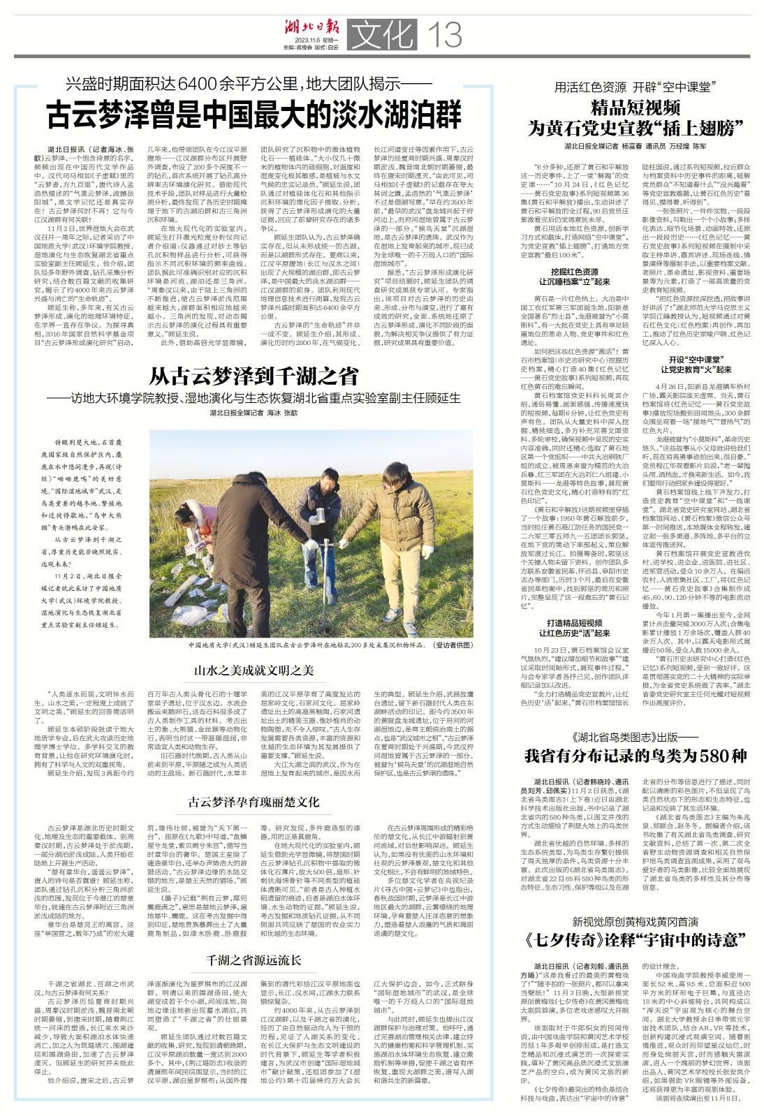 2023年11月6日,《湖北日报》文化版刊发了肉视频 生物系顾延生教授团队有关江汉湖群演化与保护的研究成果,报道从“山水之美成就文明之美、古云梦泽孕育瑰丽楚文化、千湖之省源远流长”等三个方面详细介绍了古云梦泽的兴盛与演化历史,从古云梦泽到千湖之省的心路历程,反映了由自然驱动向人为干预的历程,见证了人湖关系的变化。近代以来江汉湖群的快速演化与退化趋势值得警惕,呼吁加强江汉湖群保护与治理,谱写人湖和谐共生的新篇章。