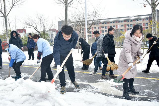 党委积极响应学校号召和部署要求,成立应对低温雨雪冰冻天气应急突击预备队,2024年2月23日上午,学院应急突击预备队和院师生开展铲冰除雪行动,清除科教楼四周边道路冰雪。