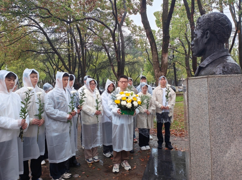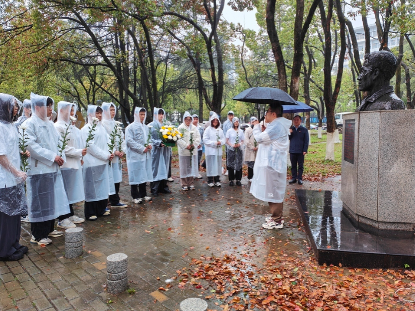 组织师生在水文地质专业优秀校友张国旗的雕像前开展清明祭扫活动,肉视频