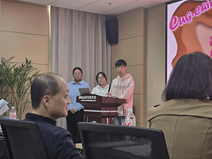 学生团队依次进行汇报答辩,展示团队研究成果。评委围绕论文成果、答辩汇报等方面进行提问,同时针对存在的问题提出修改意见。