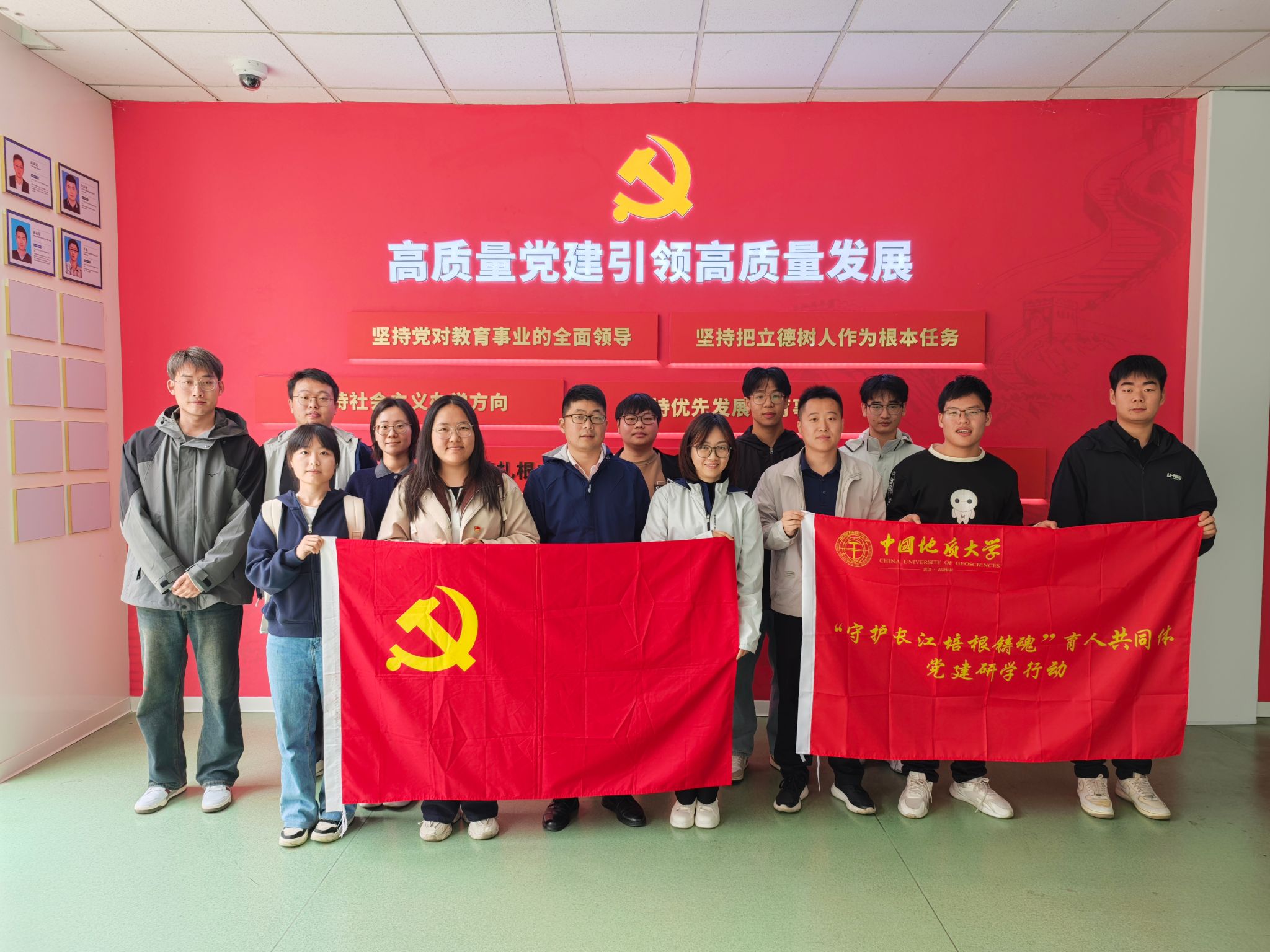 团委书记孟庆达,地下水专业大学生党支部书记张航、水文专业大学生党支部书记郭嘉诚、副书记杨好、组织委员董雨莎参与研学活动。