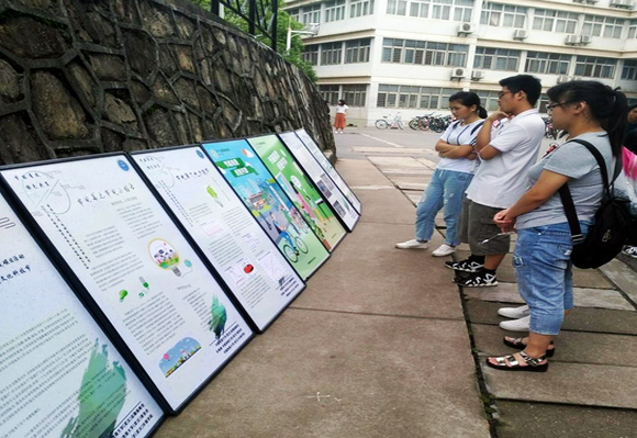 精心制作的展板摆放在北区隧道口、西区体育馆外和东区校园橱窗对面,面向全校师生普及生态文明、绿色低碳发展理念和知识,吸引了许多学子驻足观看。肉视频