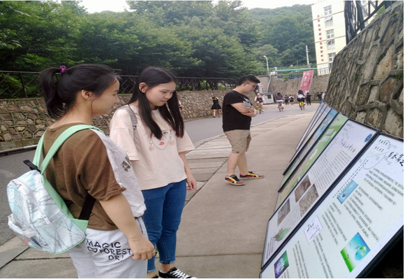 气象科普协会会长张思驻足在展板前认真阅读,她说:“我和同学们在北区路过展板时发现展板内容新颖有趣、通俗易懂,让低碳校园的氛围更加浓郁了。”