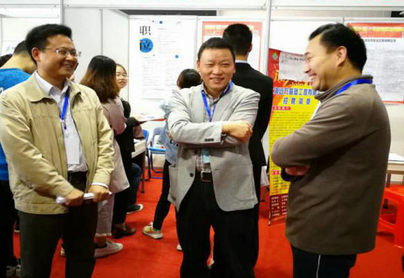 校友企业深圳市宇驰检测技术股份有限公司展位前,学院领导认真询问了公司的岗位需求、待遇情况、发展前景等,并向其推荐肉视频