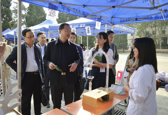 党委书记李素矿、院长马腾,副院长祁士华、王红梅、郭会荣,党委副书记朱继,辅导员、学生代表等一同参观科普展区。