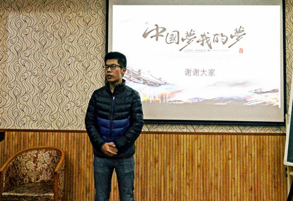 邓芳同学伴着背景音乐声情并茂的演讲感染着在场的观众,孙敏坤大气沉稳又不失幽默的演讲获得了观众们的掌声。部分演讲者全程脱稿,还有两名学生尝试用全英文演讲的形式阐释他们对中国梦和初心的理解,令人耳目一新。