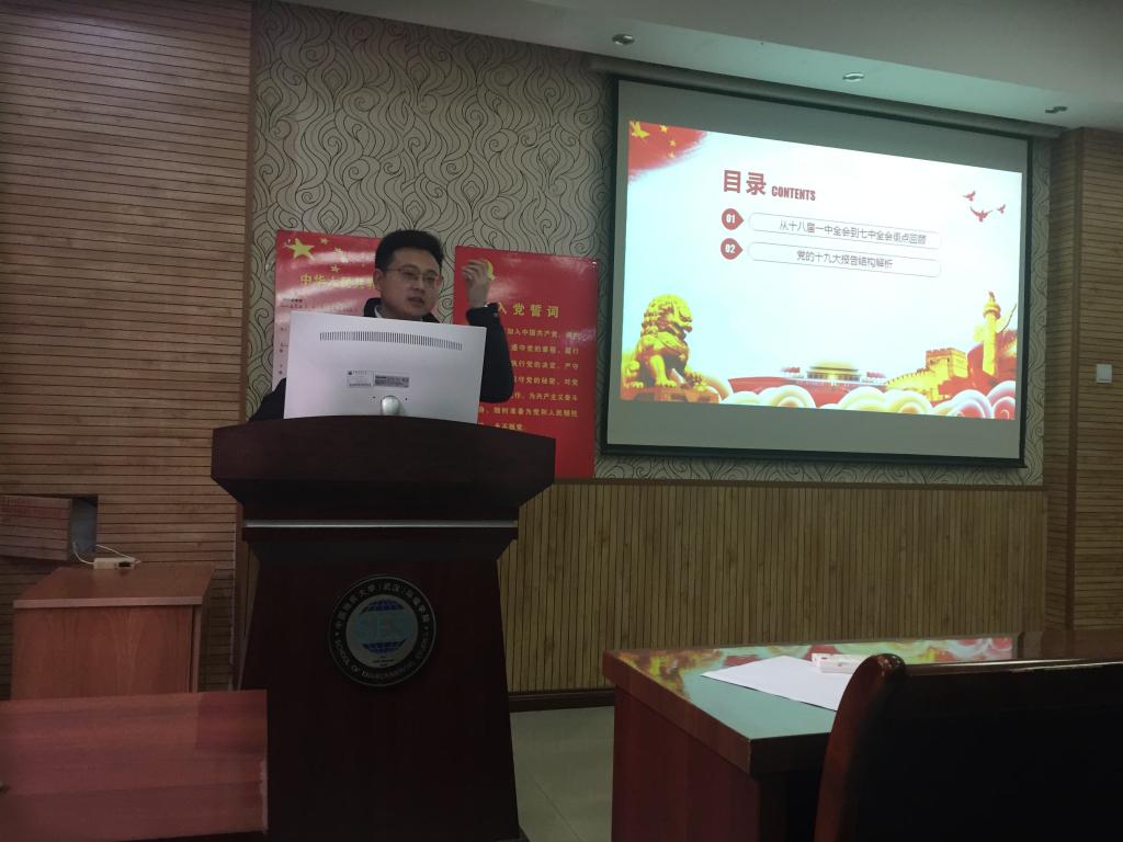 党委副书记朱继以“不忘初心、牢记使命-深入学习宣传贯彻党的十九大精神”为主题为全院学生党支部书记讲党课。