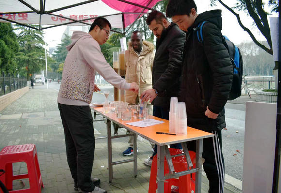 环院社团环保志愿者向地大留学生和中国学子介绍水质检测方法