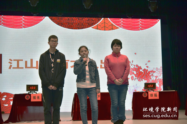 董秀婷、杜柳杨、贺婧怡三位同学组建的摇光团队精心准备,顺利通过前期笔试,在经历了“江山代有才人出、万紫千红总是春、歌尽桃花扇底风、狭路相逢勇者胜、柳暗花明又一村、春城无处不飞花”等六个环节后,从全校20余个单位派出的参赛队伍中脱颖而出,取得全场第二名的好成绩,荣获亚军。