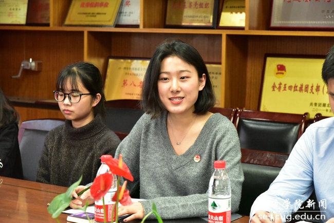 观看结束后,团支部成员高婷、王立诚、李卫娜、张正煊、贾旭东、傅悦、余奇、张心阳围绕“如何弘扬和践行‘张国旗精神’”等主题作交流发言。