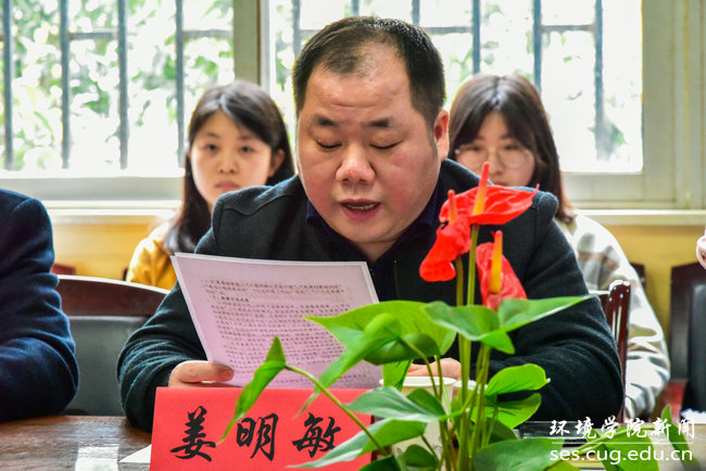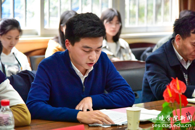 “张国旗班”团支部书记陈雪杨发言。她说,张国旗校友是地大学子的楷模。作为第一任团支书,将以身作则,带领支部同学探索组织工作新方法,不断优化服务同学质量,努力为同学们搭建素质能力提高的平台。