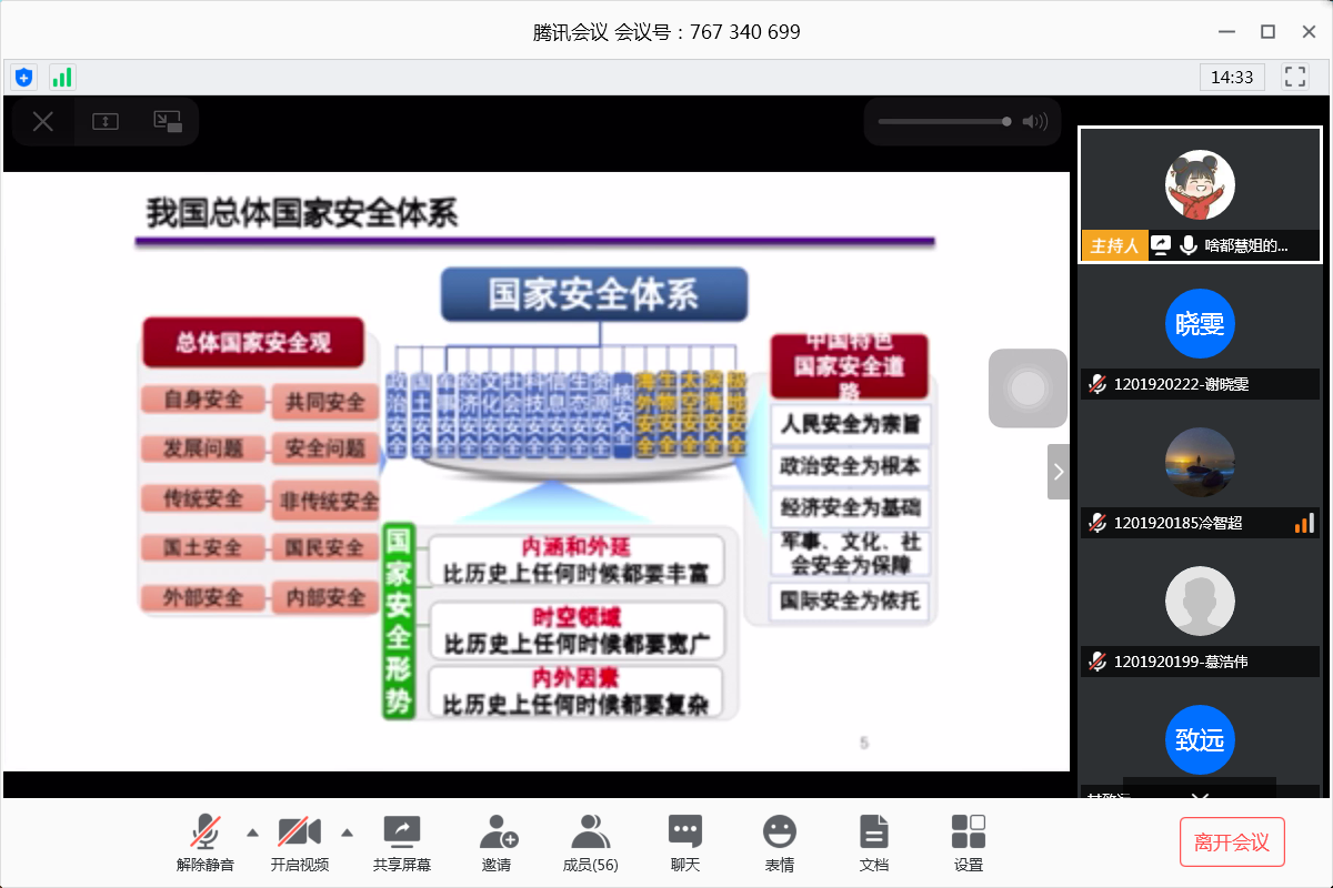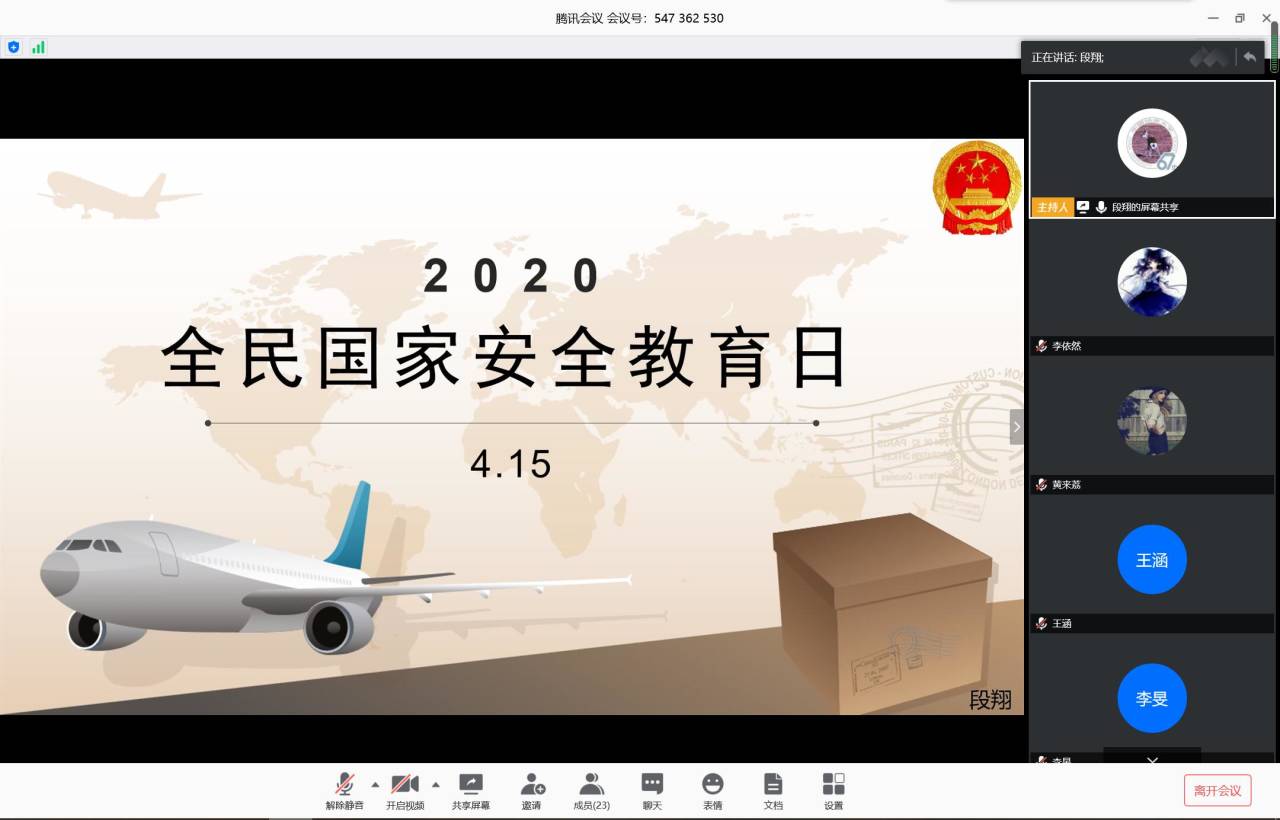 各班以班会形式收看国家安全教育课并依托QQ群、微信群集中开展学习讨论。
