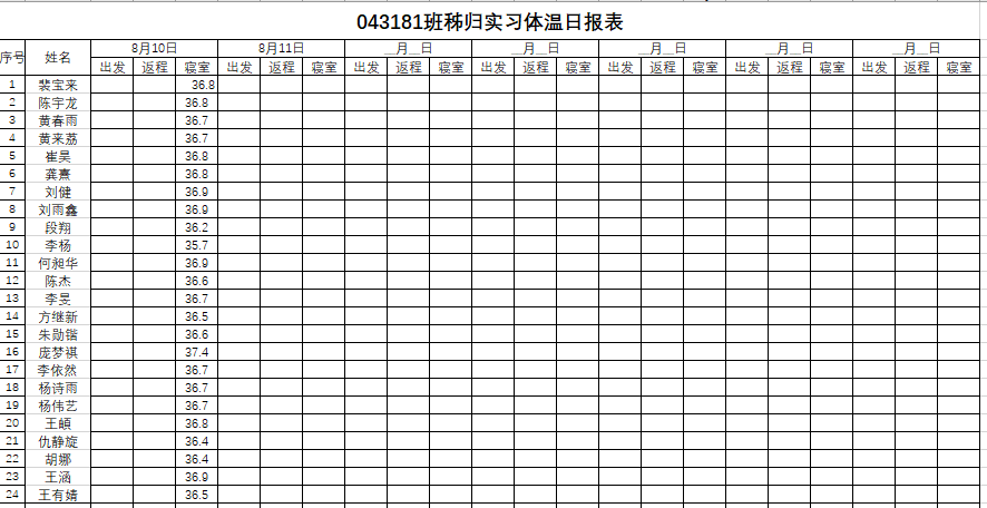 根据湖北省及学校疫情防控规定,为保证参加实习学生的身体健康,学院严格遵守疫情防控要求,细化在站疫情防控纪律,要求全体同学在公共场所戴口罩,每天早午晚三次报体温,在站实行封闭式管理,无特殊情况不得擅自离站。为保障饮食卫生安全,原则上不允许学生点外卖。同时,每天出野外时必须戴安全帽,穿荧光背心,带安全牌,严肃强调学生野外出行安全。在各班级干部得全力协助下,目前每个同学都能自觉遵守疫情防控纪律,疫情防控工作落实到位。