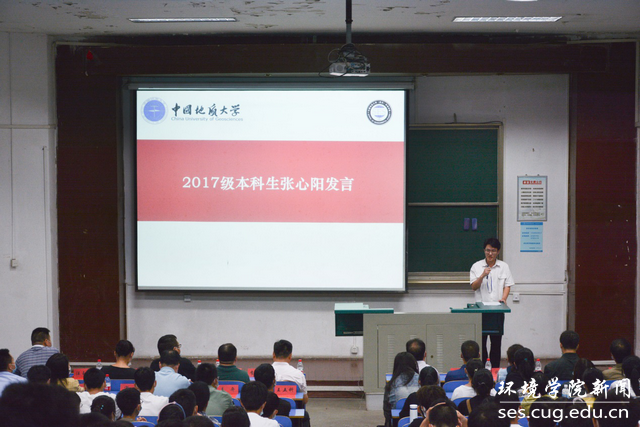 新生代表胡誉文与同学们分享报考经历,入学感受,发出“愿同环境学子一道助力国家环境事业发展前进”的愿望与期盼。