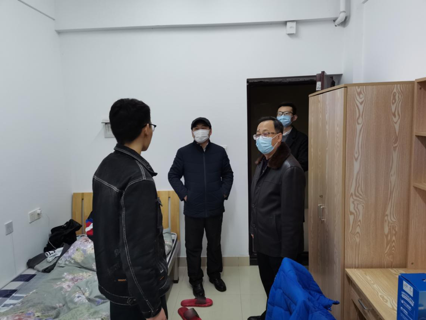 (通讯员王碧 编辑耿婧)1月31日晚上,学院党委书记李素矿、院长马腾、党委副书记王海锋、团委书记王碧一行前往南望山校区丹桂苑走访宿舍,看望寒假留校学生。