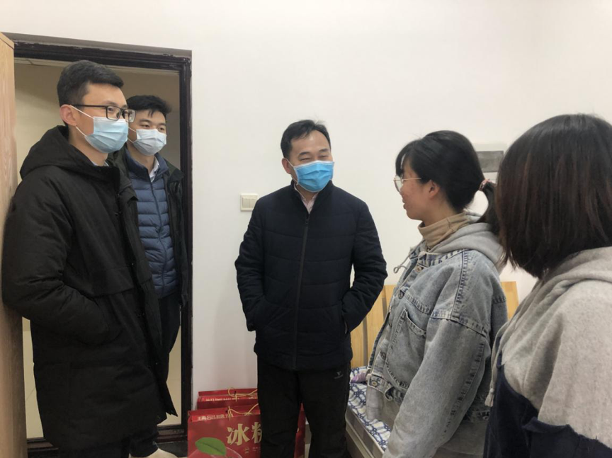 李素矿一行详细了解同学们在校情况,叮嘱同学们做好防护、注意身体,勉励同学们新的一年朝着自己的目标继续努力奋斗,祝愿同学们新的一年生活愉快、学业有成、梦想成真。