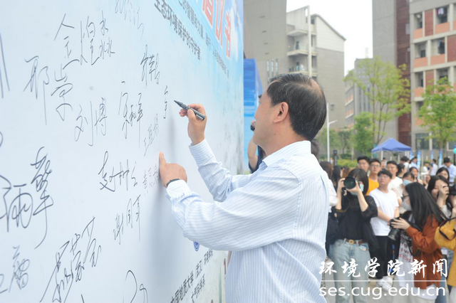 活动现场,同学们纷纷在低碳生活倡议书展板上签名,表达愿为碳达峰、碳中和贡献自己的智慧和力量。与会领导和嘉宾也在同学们发起的低碳生活倡议书上相继签名。