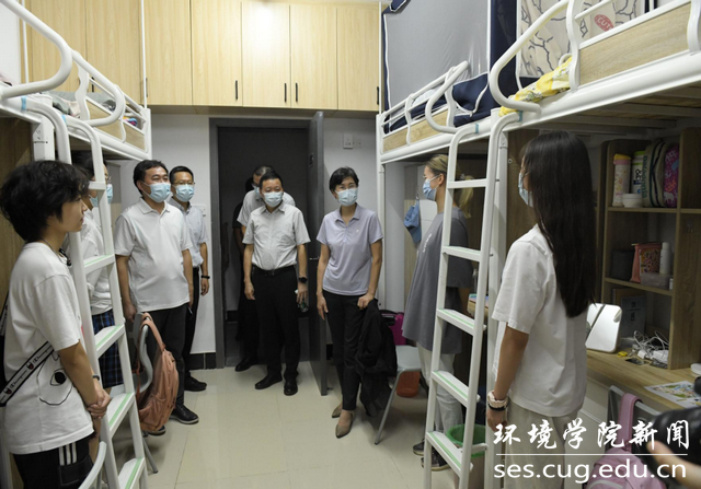 南望山校区新生宿舍。他们与新生亲切交流,详细了解新生到校后情况,勉励新生积极融入大学生活,树立新的目标,开始新的征程。